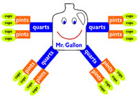 - Model in a think-aloud fashion the process of determining the number of cups that are equal to a gallon (e.g., "We now know that there are four quarts in a gallon and there are four cups in a quart; therefore, I need to multiply 4 x 4 to determine that there are 16 cups in a gallon.").
