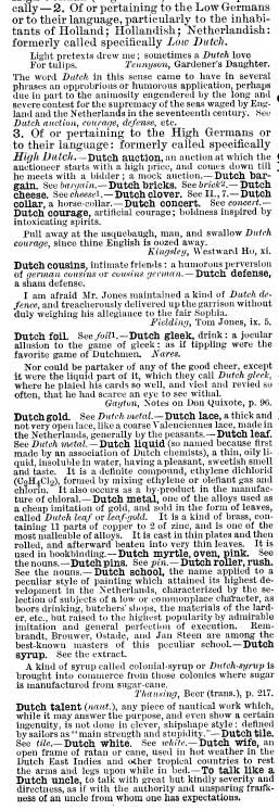 There is much to love about the Netherlands today — a country that is socially progressive, bicycle friendly, extremely well served by public transportation, solvent, and, as far as we know, not at odds with Britain about anything of importance — so it is interesting that so many of the pejorative compounds associated with the Dutch persist in English. We suspect that most people use them today without much knowledge of their origins, but perhaps the Dutch compounds are a cautionary tale: don't mess the arbiters of a leading world language — it may result in your being needlessly disparaged for centuries to come!