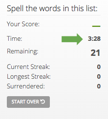 We've given the Spelling Bee mode a makeover, too. Now, when you study the spelling of words on your list by clicking the Spelling Bee tab, a timer tracks the length of time you're spending in any round of the Bee, pausing when you spell a word, and resuming when you ask for the next one. Additionally, if you navigate away from the Spelling Bee, the round will pick up where you left off when you return, a boon to anyone spelling a longer list of words.