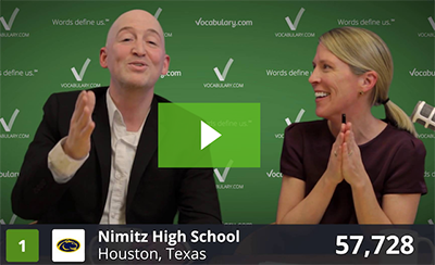 What's behind this surge of word learning? Nimitz teacher Mr. Andrew Terrell says that actually, despite the recent attention at the national level, "It is not an overnight thing." He explains that while the Cougars have be practicing and learning on Vocabulary.com for quite some time, like a lot of schools they just recently got serious about competing at this high level. Mr. Terrell went on to tell us, "That strand of adventure and competition are natural for our students... For now, I am just proud that the students are learning." Imagine what the Leaderboards will look like next season, when Nimitz enters the season in October at this level of play.