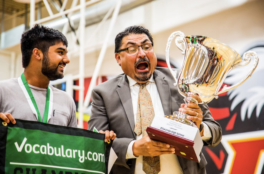 The Vocabulary.com team is certifying the official results, but we are proud to announce that the provisional Vocabulary Bowl Champion is Etiwanda High School of Etiwanda, California with a mind-blowing 421,222 words mastered. This is the second straight title for the Etiwanda Eagles, who also won the California State Champion banner.