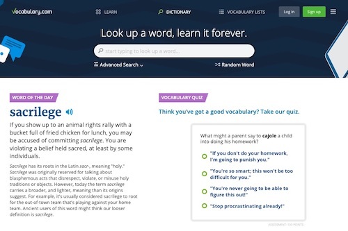 Think you're a vocab whiz? Take a fun quiz to find out just how strong your word power is! Now, users who haven't created an account can try out Vocabulary.com's questions when they look up words.