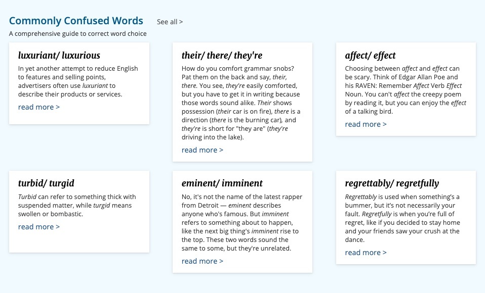 We've also renamed the "Choose Your Words" section as "Commonly Confused Words" and moved it higher up on the page. Now it's easier for users to access, and easier to see how valuable this great resource is!
