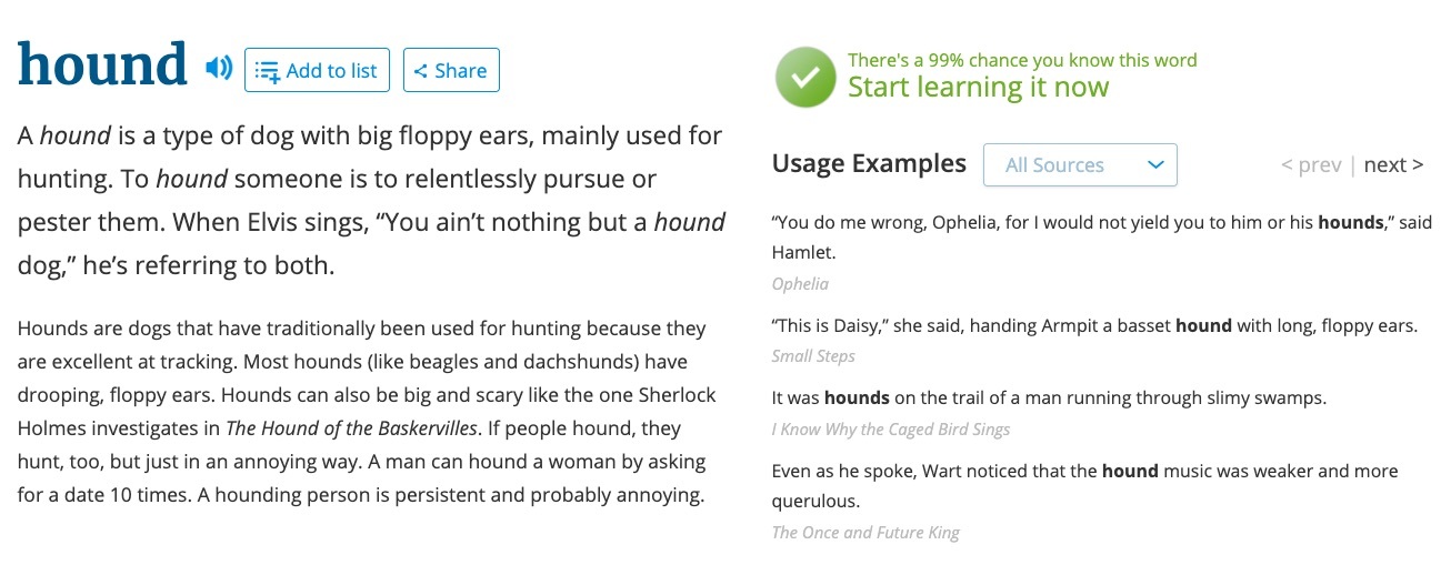 Despite these changes, one thing is the same: the Vocabulary.com dictionary is still written for humans, by humans. One of the reasons that both learners and teachers love our dictionary is the friendly explanations that make it fun to learn new words. These aren't dry definitions that you'll look up and forget — these are clear, amusing descriptions that you'll understand and remember!