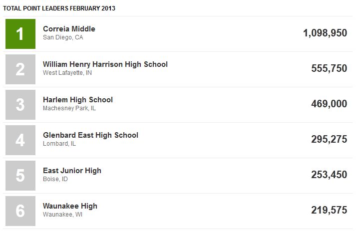 No matter when or how often you've earned an honor, you'll always be able to see how you rank against everyone else. This can be great motivation. See if you can beat your "yesterday" placement. Or at least beat your point total for the month. And if you're at a school, get your friends to join in and try to outdo the other schools ahead of you. Whether you're on your own or working together with classmates, there are some serious bragging rights on the line!