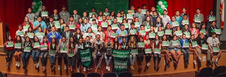 E-High's students mastered more words in one month than any other school in the history of the competition. The defending North American Champions mastered 100,655 words in just 30 days, breaking their own previous record of 97,225 words mastered in September of 2018. With their latest win, Etiwanda receives yet another Vocabulary Bowl Champions Banner, bringing their haul to a record-setting 19 pennants.