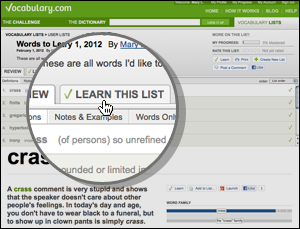 You’ll see that we’ve added a “Learn this List” tab, too. Click on it to start learning. We'll give you a wide array of questions designed to help you understand the words in the list you've selected, and we'll keep challenging you until we're sure you've mastered the words and all their meanings.