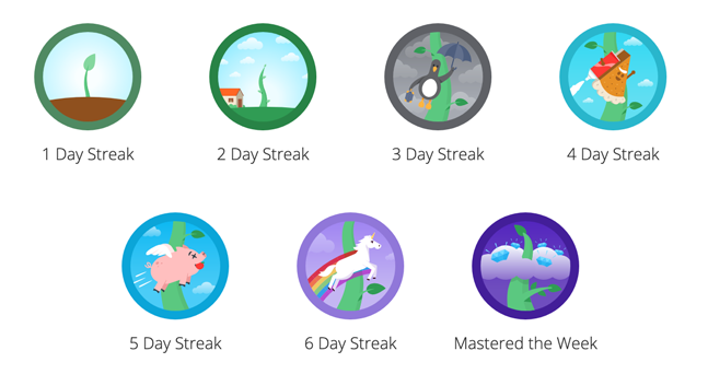 Mastering a word every day is a great personal goal to have on Vocabulary.com (as well as in life). That's why starting now, when you master your first word of the day, you'll earn a one-day daily streak achievement. Master another word tomorrow, and you'll get the two-day streak badge. Keep it up for a week straight, and earn the Complete the Week streak achievement.