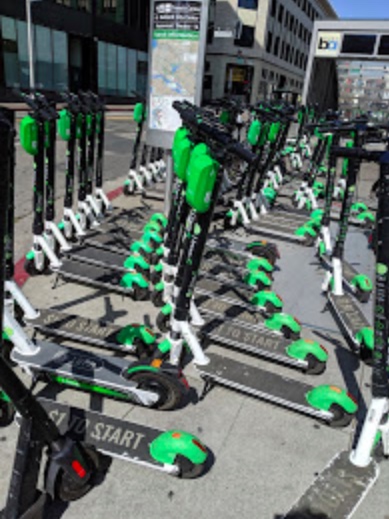 Unlike most rental bicycles such as Ford GoBikes and CitiBikes, which are parked in locking docks, e-scooters are dockless: After you've arrived at your destination, you simply leave your scooter near the curb for the next rider — or for a roving freelance charger to collect and recharge overnight. A San Francisco Chronicle story in July 2018 described the routine, which the reporter likened to a "high-tech scavenger game":