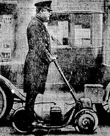 Almost as soon as children's scooters took off, some people decided to motorize them for grownups. A Long Island City, New York, company led the way with the Autoped, a scooter with a four-stroke gas engine; the vehicles were sold between 1915 and 1921.