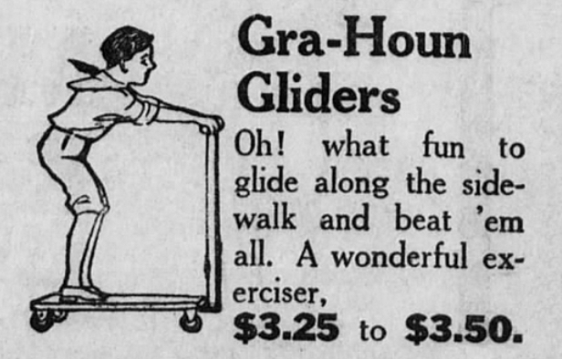 The e-scooters arrived without warning in late 2017 and early 2018. But scooter is much older. Without the e- prefix, it's been part of English for almost two centuries. In the early 1800s, it referred to a person who scoots: moves suddenly and swiftly. (The verb seems to have come from a Scottish term meaning "to eject or squirt." If you have a dog, you probably know a different and more worrisome meaning of scoot.) In North America around 1900, a scooter was a spoon-bottomed sailboat with steel runners that allowed it to navigate on ice and water; 15 years later, during World War I, a scooter was a fast motorboat. But it also began appearing as the name of a child's foot-propelled, handlebar-steered toy and as slang for a motorcycle.