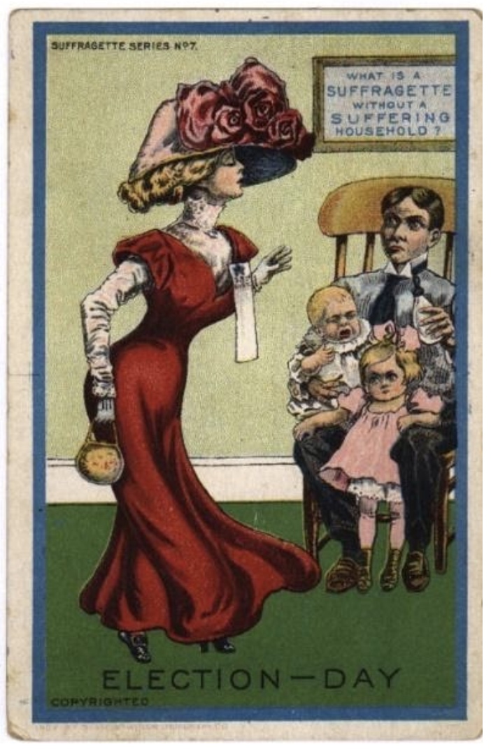 Suffragist or suffragette? Both terms were used on both sides of the Atlantic, but with different overtones. Suffragist is the older word, having originated as a general label for anyone advocating for enfranchisement (see franchise, below). After 1870 and the passage of the 15th Amendment, which gave African American men (but not women) the right to vote, suffragist came to signify more narrowly a women's-suffrage advocate. It was sometimes shortened to "Suff." Suffragette was coined in 1906 by a British journalist: The French -ette suffix can signify something small (a cigarette is a small cigar, a kitchenette is a small kitchen) or something feminine (majorette, brunette, dudette — originally a female patron of a dude ranch, now a humorous term for any woman). Suffragette was intended to belittle, but British right-to-vote advocates quickly reclaimed it, pronouncing the word with a hard G and saying it meant they were "out to get" the vote. In the US, suffragist was the favored term. The Massachusetts centennial site Suffrage100MA notes that in the US suffragettes were characterized as "unladylike and reckless," while suffragists were "gentle and innocent, but vulnerable to joining their counterparts."