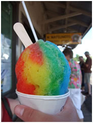 Hawaiian shave ice in traditional rainbow colors. Via Shave Ice Machines.