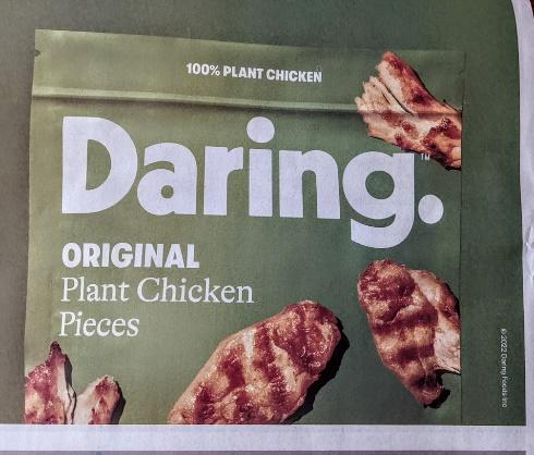 Go abstract. One of the most conspicuous new trends in plant-based-food naming, especially among companies founded in the last decade, rejects negatives and similes in favor of high-concept abstract words: Impossible, Beyond, Daring, Just. These brand names say “We’re not fake anything—we’re real change.” Their brand stories often emphasize not merely taste and texture but health and environmental well-being. Impossible Foods, whose burgers are sold in supermarkets and fast-food chains and which has branched out into plant-based chicken and pork alternatives, declares on its home page, “You deserve better. You deserve Impossible.” Beyond Meat, founded in 2009, challenges us to “Take your health beyond.” In January, Daring Foods, founded in 2017, took out a four-page ad supplement in the New York Times to trumpet that it’s “making chicken better by making it out of plants.” (On its website, Daring calls its product “the plant chicken for people who love the taste of chicken chicken.”) And JUST Egg (2011), which makes “plant-based alternatives to conventionally produced egg products,” pulls off a double meaning with “JUST,” which can signify both “solely” and “righteous.”