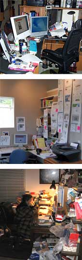 The first desk belongs to Mark Husson of Denver, CO, who writes "forecasts of the astrological kind."