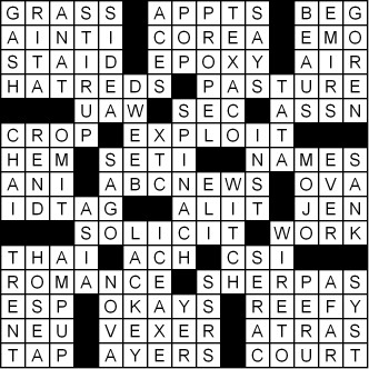 As in previous months, this crossword relies on how the Visual Thesaurus links from one word to another to form a chain of synonyms. Use the Visual Thesaurus word maps to figure out how one step links to the next. You'll find that the first and last steps in the chain, when taken together, form the name of a popular summer movie character.