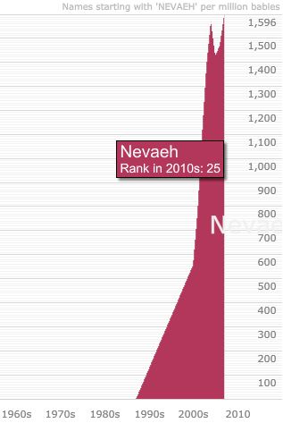 - Double-click on the NameVoyager graph for "Nevaeh" and reveal its origin as H-E-A-V-E-N spelled backwards.