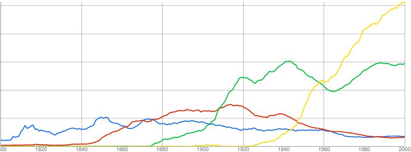 - Another example of word research with the Ngram viewer could involve contrasting usage histories of multiple words with the same root – e.g., telescope, telegraph, telephone, television. In this way, students can see how one ancient root (the ancient Greek root tele- meaning "far") can spawn many words and how often those words are used is related to societal or technological changes.