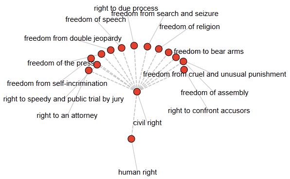 - Click on the red meaning bubble closest to "civil right" and display all the Constitutional freedoms and rights included in the Visual Thesaurus database.