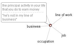 - For example, display the Visual Thesaurus word map for "job" and then click on the first noun meaning in its meaning list "the principal activity in your life that you do to earn money. " Clicking on that meaning leads students to a host of alternative keywords (e.g. , occupation, profession and vocation).