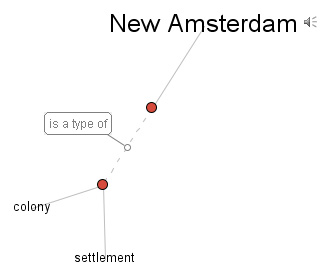 - In this case, it would be wise to search for a hypernym—or a more broad generic term that could apply to the New Amsterdam you have in mind (such as "colony"). The Visual Thesaurus shows the relationship between hyponyms (more specific terms) and related hypernyms (more general terms) with a "is a type of" dashed line:
