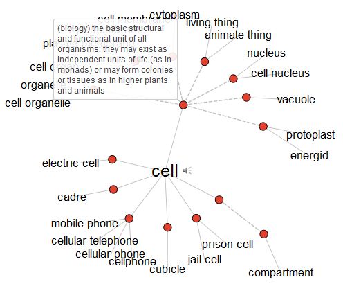 Using the VT to define content-specific language:- Show the class the Visual Thesaurus word map for cell on the white board.