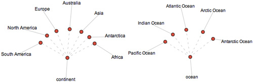 Discovering the names of the continents and oceans with the Visual Thesaurus: