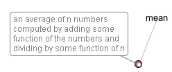 Display the Visual Thesaurus word map for mean, pointing out the definition "an average of n numbers..." and explaining that most people use the verb form of "to average" to describe how to find the mean value (i.e., total all the numbers and then divide by how many numbers there are).
