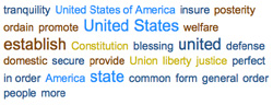 - Among the list of nouns in the preamble, ask students to single out those abstract nouns that capture the big ideas, values or ideals that the founding fathers and framers of the Constitution felt would be embodied by the U.S. Constitution and form the basis of American government (i.e., Union, justice, tranquility, defense, welfare, and liberty).