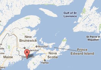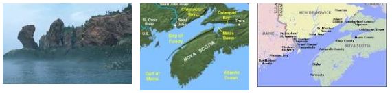 - If possible, display an image of The Bay of Fundy using Google Maps on your white board. Click on the minus sign on the movable scale located on the left side of the map image (under the little orange man) in order to enlarge the scope of the map. Keep clicking on the minus sign until the Gulf of St. Lawrence appears in the upper right corner of the map. (If you cannot access Google Maps, you can display the bodies of water on a world map, globe, or map of North America.)