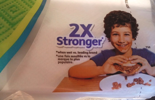 It's an odd way to express a fraction (isn't it really 11/25?) but the phrase has stuck, perhaps pointing to the enduring value of a marketing phrase that depends on a unique and unlikely pairing of words. Perhaps it was the inspiration for another quantitative phrase that recently caught my eye, on a package of napkins: "2X stronger":