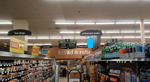 I was arrested (that would be in the sense "caused to stop") in the supermarket the other day when I noticed this sign, one of many that appear at intervals along aisles to help shoppers navigate:
