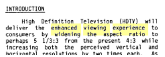 Some things are talked about often enough as being enhanced that they pop out in usage statistics. Have you heard the phrase "enhanced viewing experience"? It may ring a faint bell owing to its frequency. It took off in the late 1980s, appearing first in various industry conference reports, like this one, when high-definition television (HDTV) was being developed: