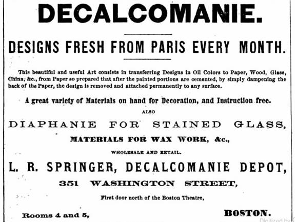 Cockamamie is a particularly interesting word that gives no prima facie clue that it is related to the word decal – but as decal's wordmap shows, there is this other word, decalcomania, lurking in the background, which is the parent of both decal and cockamamie. Decal is in fact only a back-formation from decalcomania, the original English term for the technique of transferring an image by moisture, heat, or pressure from one surface to another. The process, originally French, hit American shores in the 19th century and quickly became a craze.