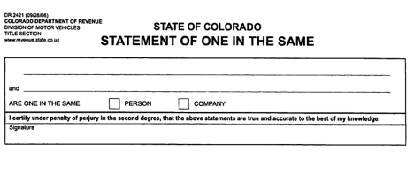 The purpose of the form is to affirm officially that two different names are associated with the same person or company. It's not hard to imagine how such an error could arise. People hear the expression, never having seen it written. In ordinary, casual American pronunciation, there is no difference between "one and the same" and "one in the same": the vowel of 'and' becomes a schwa, its 'd' is assimilated, so 'and' and 'in' are indistinguishable. Ah, but does the original and correct expression make any more sense than the nominally incorrect one? That's debatable.