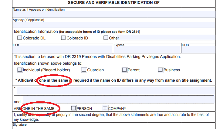 One that I wrote about formerly was the confusion between one and the same (the proper version) and its confused partner one in the same. I illustrated that confusion with a form from the Colorado Department of Revenue website. I can now happily report that the form in question is correctly titled "Statement of One and the Same." But the memo did not get through to all departments because we still find, on another official form, the following: