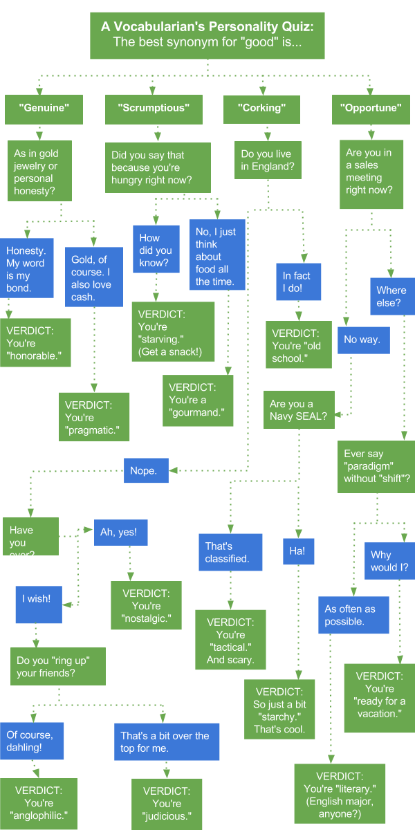 Find out where the word good leads you in this tongue-in-cheek personality quiz flowchart from Vocabulary.com.