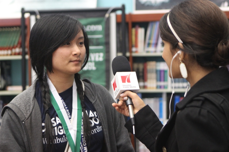 Their hard work and persistence has taken the Chavez Lobos to the top spot in the yearlong Vocabulary Bowl, and local media is paying attention. In coverage of a ceremony conferring Chavez's latest monthly leaderboard victory banner, Houston Public Media attended, interviewing high-scoring senior Tam Tran about her favorite word, epiphany, as part of a report on the school's remarkable success.