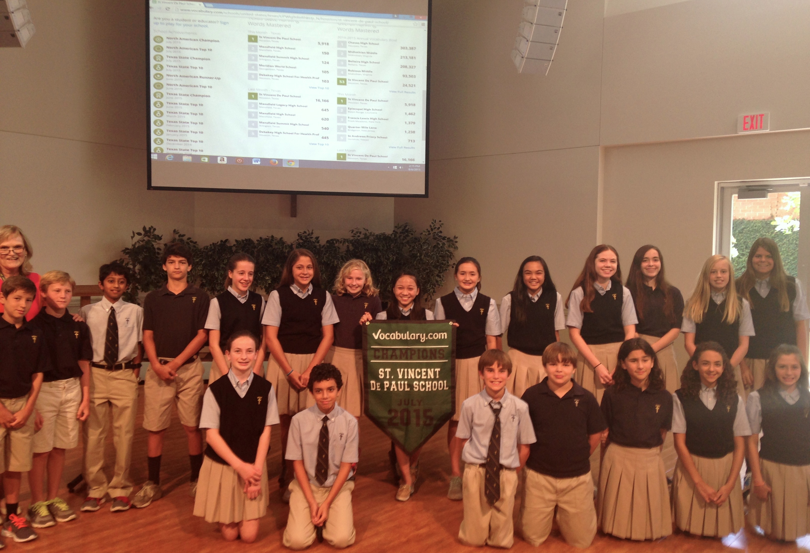 Competition fueled the fire. Recognizing fellow Houston-area Chavez and Bellaire high schools on the leaderboard for the Vocabulary Bowl, a year-long, North American-wide contest, St. Vincent's students were inspired, even if the much larger schools' leads seemed hopelessly out of reach. (The 2015-2016 Vocabulary Bowl, starting in October, will include separate middle school and high school divisions, with a monthly banner winner and an overall champion named in each.)