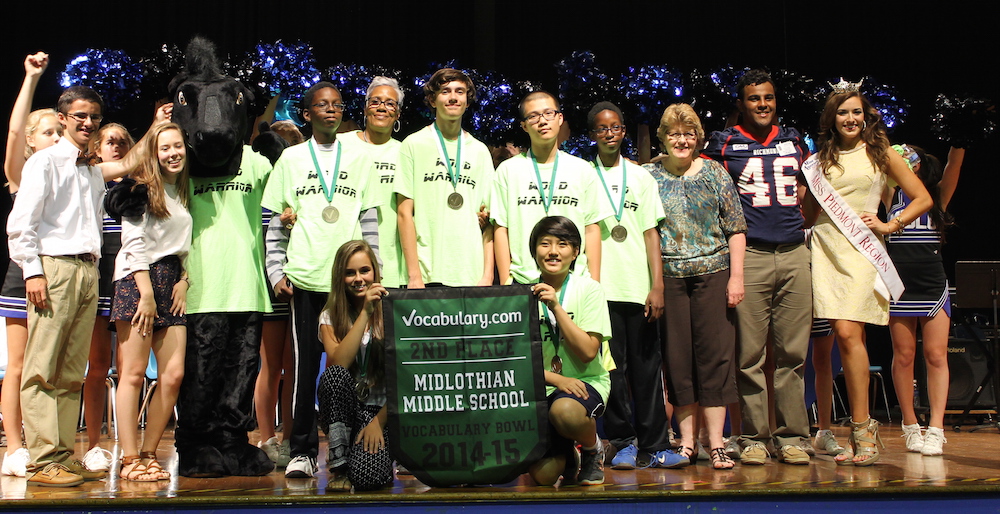 Over the course of the past academic year, students at Midlothian Middle School in Midlothian, Virginia mastered 213,181 words in the 2014-2015 Vocabulary Bowl, finishing well ahead of any other school in Virginia and earning a second place finish in the Bowl overall.