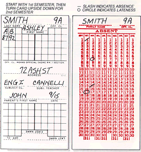I hold up the one- by three-inch slip of stiff paper called the Delaney card." This is where I record your work and take your attendance each day. It's also a way I get to know your names, because all of your cards are placed in this book's slots according to where you're seated." I hold up my red, looseleaf Delaney book and show the blank, slotted pages of this New York City public high school staple. Invented by a New York City high school history teacher, Edward C. Delaney, who died in 1969, it's currently made in Syosset, N.Y.