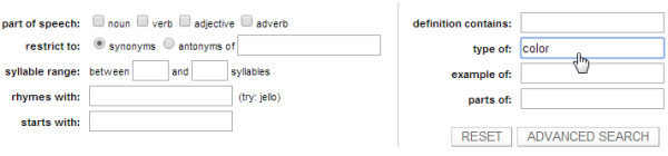 Take, for example, our list 195 Words for Color. We made it in a matter of minutes, combining the power of our Dictionary's Advanced Search feature with our List Building tool.