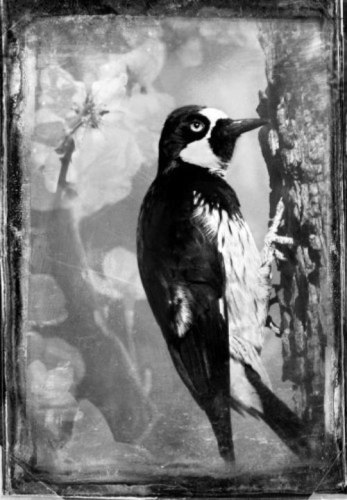 The New Yorker's blurb explains Yudelson's use of antique in the title — she altered her digital photographs to give them the look of tintypes, a type of photograph popular during the 1860s and 1870s. What about aviary?