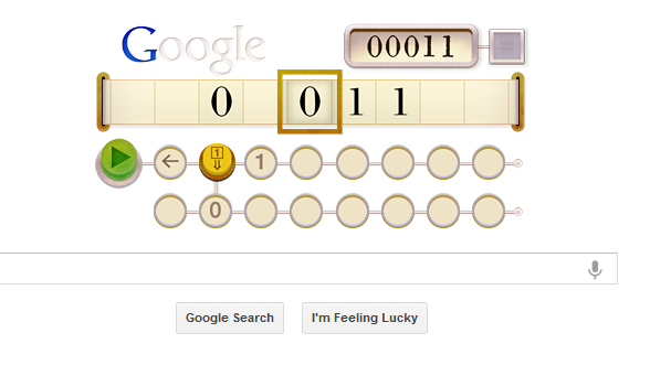Let's start with Turing. In 1936 (before computers), Turing formulated a hypothetical "automatic machine," now known as a Turing machine. Although a Turing machine isn't a practical design for an actual computer, it's a useful way to think about what sorts of things a machine can compute. If you happened to go to the Google home page on Turing's birthday, you might have seen that day's Google Doodle, which was a brilliant interactive model of a Turing machine:
