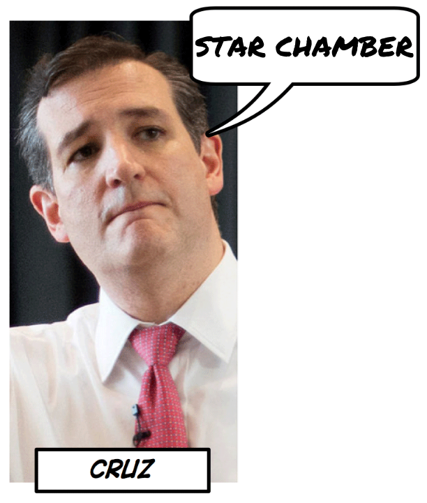 Although a star chamber is now associated with secrecy and shady dealings, the original star chambers were set up in 15th-century England to ensure that the rich and powerful were not allowed to influence the courts unfairly. Thanks to the star chamber practices such as witnesses being questioned in secret rather than in open court, these proceedings eventually became a symbol of judicial corruption. Cruz has used the term both at the debate and on the campaign trail to protest the secrecy of the Federal Reserve.