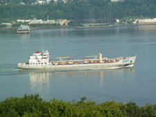 Tugboats push and pull barges hauling oil, coal and scrap metal in both directions. At night, brightly lit barges sleep in the middle of the river a half-mile apart from each other, moored to their tugboats, waiting until morning to continue their journey north and south. Bruce Richards, vice president of marine transportation at Moran Towing (you know their tugs by the big "M' on their smoke stacks), told me that those sleeping barges are usually empty, awaiting a berth somewhere in New York Harbor, farther down the river.)