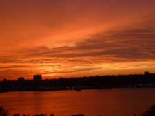 Autumn will come and acres of leaves on Riverside Park's trees will be yellow, brown and red. They will drop and winter will come. The trees will be bare, and for the first time we'll see the cars on the Henry Hudson Parkway zipping by, traffic that has hummed steadily since we've been here but haven't seen. Rather than an intrusion on the river scene, on Riverside Park's greenery, and on the beautiful sunsets across the river, it will add to the vitality of our life here. We're looking forward to it. We didn't move to Manhattan for the tranquility.