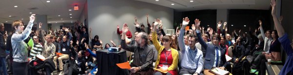 I presided over the vote in my capacity as the society's Chair of the New Words Committee. As usual, the ADS meeting was held in conjuction with the much larger Linguistic Society of America, and altogether nearly 300 people showed up for a spirited voting session, with many passionate arguments for and against the various choices.
