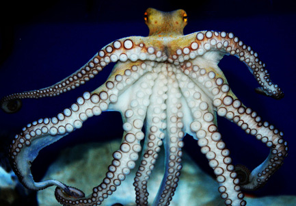 Speaking of octopus, that word has often been productive lexically, probably because the animal is one of the most unusual and distinctive in nature, with its bulbous head and eight tentacles. The OED records many metaphorical uses going back to the late 1800s, including references to a "commercial octopus," "electric octopus," and "concrete octopus." A 1993 use from Eric Hobsbawm's book The Age of Extremes is characteristic of octopus metaphors: "Whatever the economy, the wealth, the cultures, and the political systems of countries had been before they came within reach of the North American octopus, they were all sucked into the world market." The Cartographic Land Octopus has been a favorite of map-makers who want to portray an evil empire.Octopuses belong to the order Octopoda, which has inspired meaty adjectives (such as octopodous, octopoid, and octopodan) that can be used literally or metaphorically. In his 1961 book The Rim of Space, A. Bertram Chandler described a sci-fi monster in down-to-the-ocean-floor terms: "It looked, with its sprawling roots, like some huge, octopoidal monster at the end of a giant's fishing line." Dean Koontz, in his 1985 novel The Door to December, described "the enfolding, octopodal city of Los Angeles." Such comparisons are not kind to the animal, but metaphors and idioms are rarely kind to anybody. Language itself is a rabid octopus.
