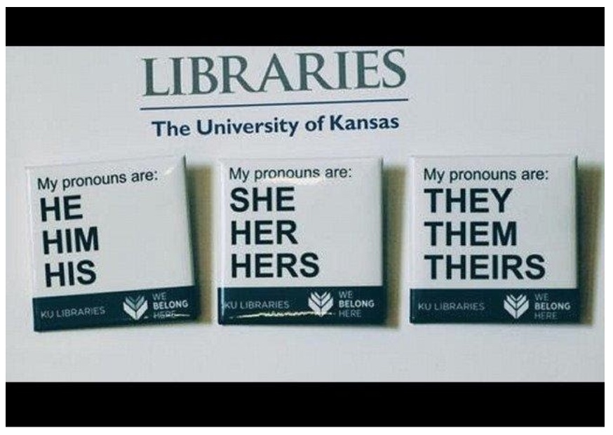 "(My) pronouns” was recognized for its use as an introduction for sharing one's set of personal pronouns (as in "pronouns: she/her"), while singular "they" was recognized for its growing use to refer to a known person whose gender identity is nonbinary. Singular "they" was previously selected by the ADS as the 2015 Word of the Year.